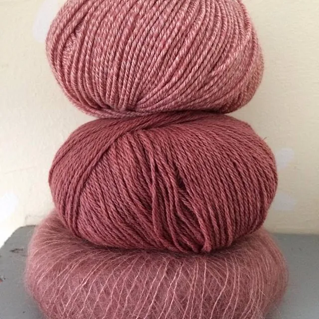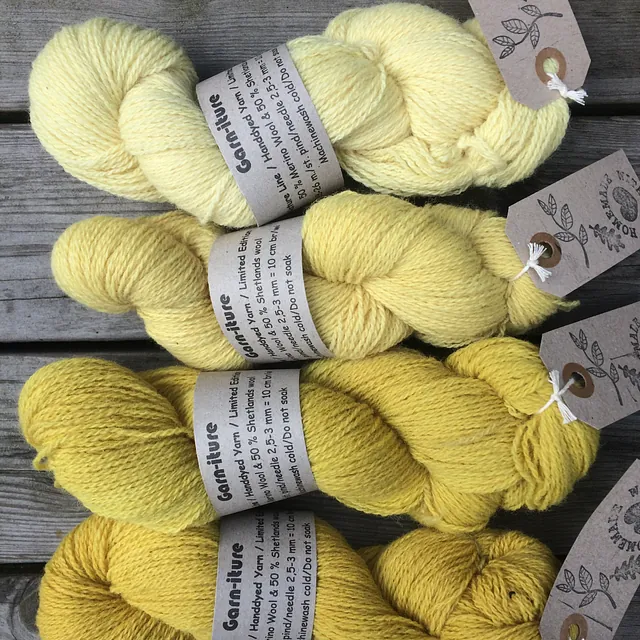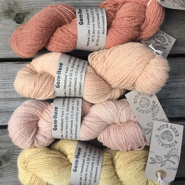 Derudover håndfarvet garn fra fx Nuturing Fibres og garn jeg selv plantefarver.